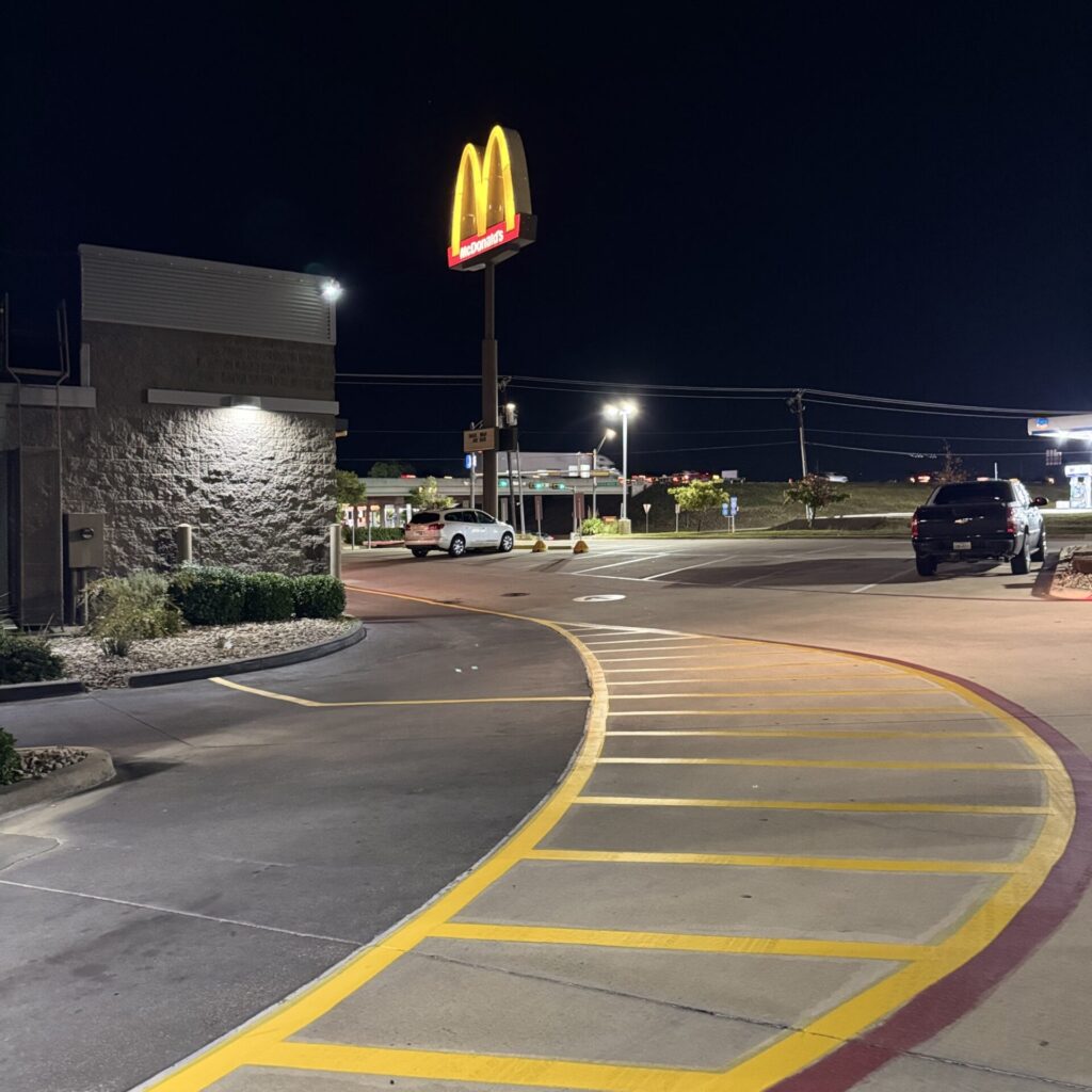 We deliver precise striping for Quick-Service Restaurants — drive-thru lanes, arrows, “Drive Thru,” ADA stalls, curbs, and all traffic stencils. We also offer overnight striping to avoid disrupting your daily operations