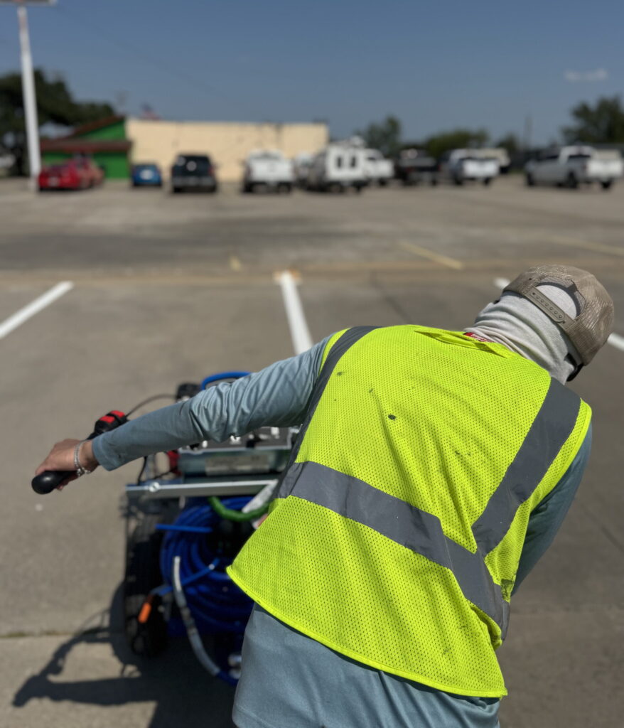 We apply high-durability traffic paint built for Texas weather, delivering sharp, precise parking lot striping for commercial properties across the DFW area.
